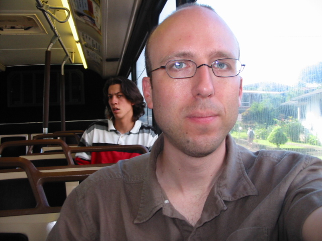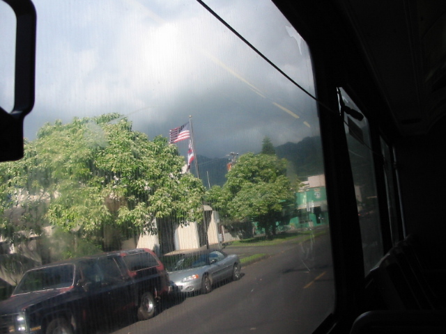 The bus went up a narrow, windy road.