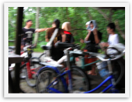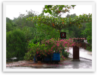 The drink stand started to get crowded with people trying to stay dry. Perhaps the coconut lady