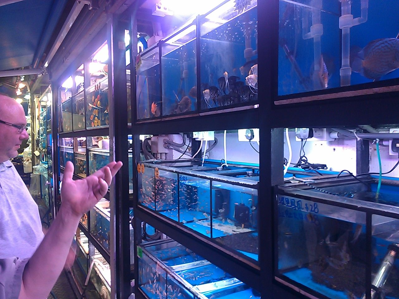 A real-life French Canadian in front of some extra-beautiful angelfish