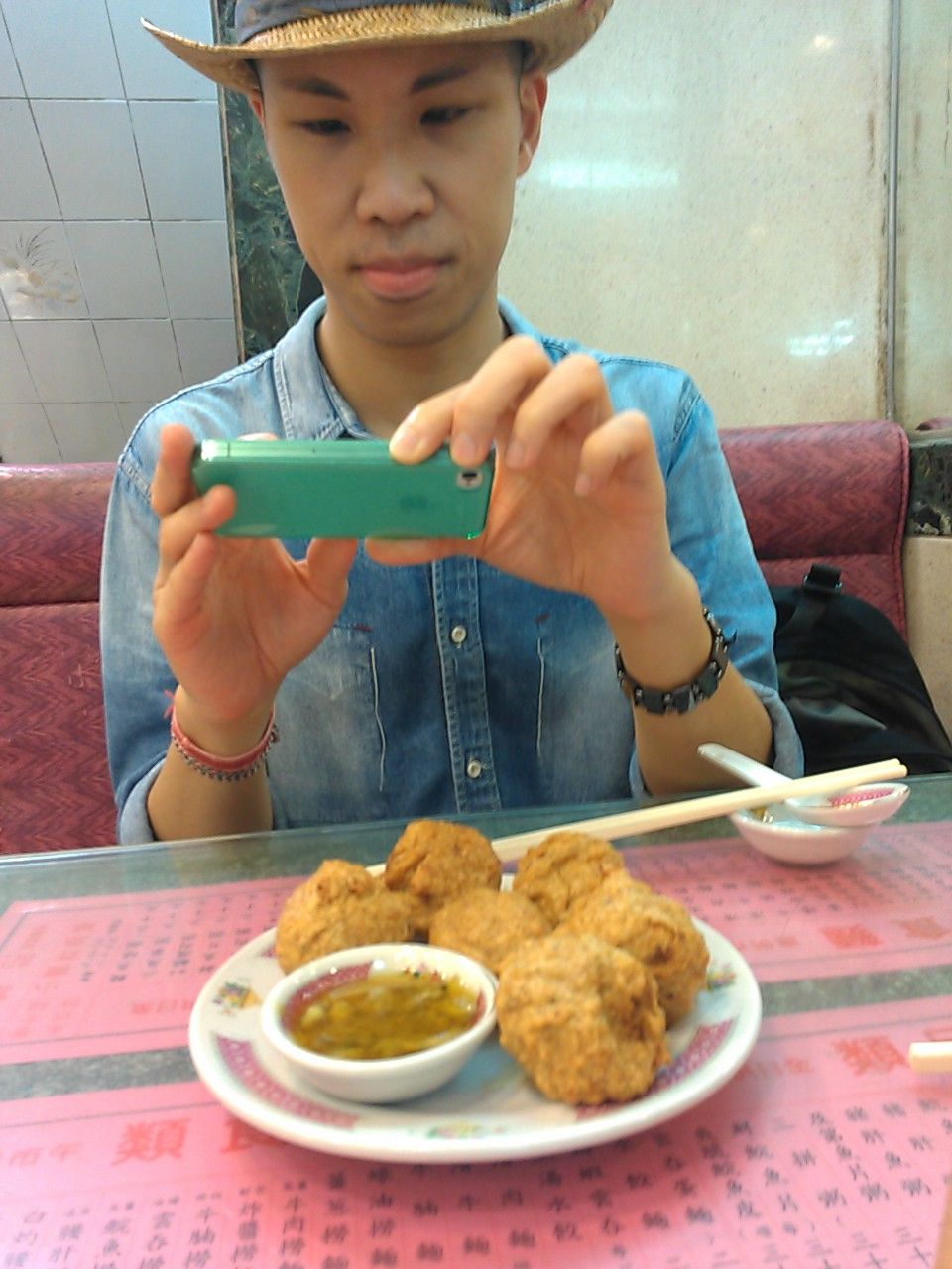 Another brilliant booking choice by Brooke, a private food tour with writer Johannes Wong. Here photographing deep-fried fish balls made from chopped dace.