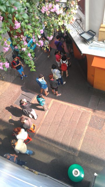 Heading to the Chinatown subway station just now, I encountered this enormous line-up. It trails around the corner and into a square, doubles back, then curls around into an alley where the people have neatly (and, apparently spontaneously) doubled back on themselves three or four times.