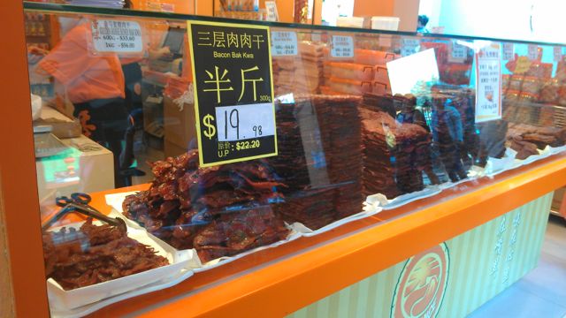 I like bak kwa ok, but what I really like is that this whole neighborhood smells like cooking bacon. I don’t have to stand in a line for that.