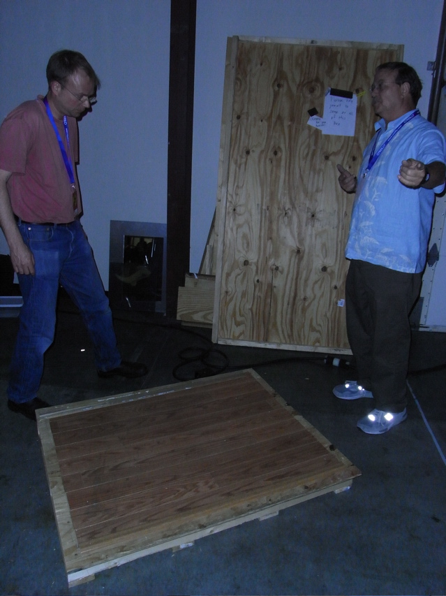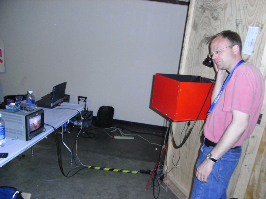 Shipping the crate from Minnesota to California was quite expensive. So after we finished shooting (141 segments, total!) we stripped the booth for electronics, broke it down, and left it behind. I’m hoping that one of the other makers salvaged the panels… otherwise the Teamsters may have a chat with us the next time we’re in the state.