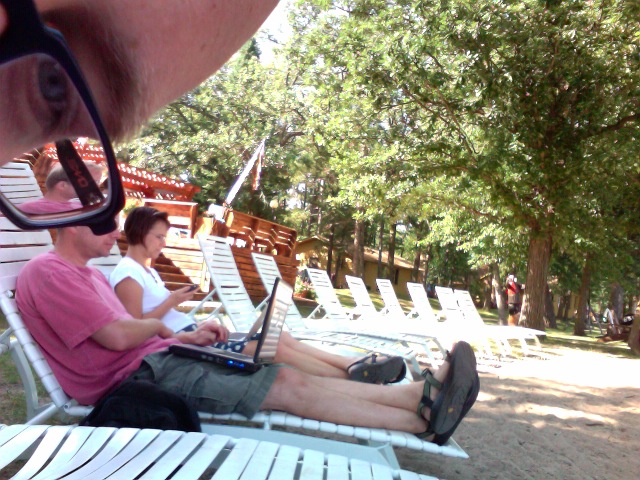 That’s me in the foreground, then my brother, and then his wife Rachel. What with this resort being deluxe and all, the girls are in morning childcare.